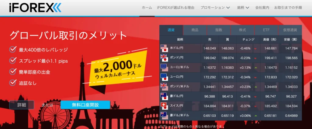 | iFOREX 詳しい解説 | 100%+25% | 約30万円 (2,000ドル) | 全口座 |