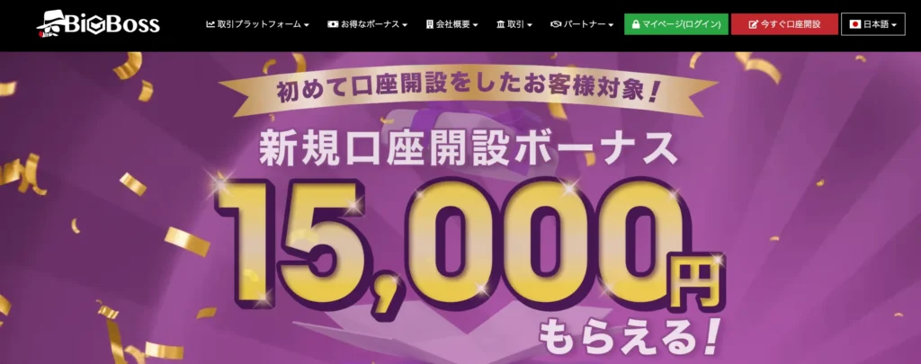 | BigBoss 詳しい解説 | 2,222倍 | あり | 20% (0%) | 最大15,000円 |